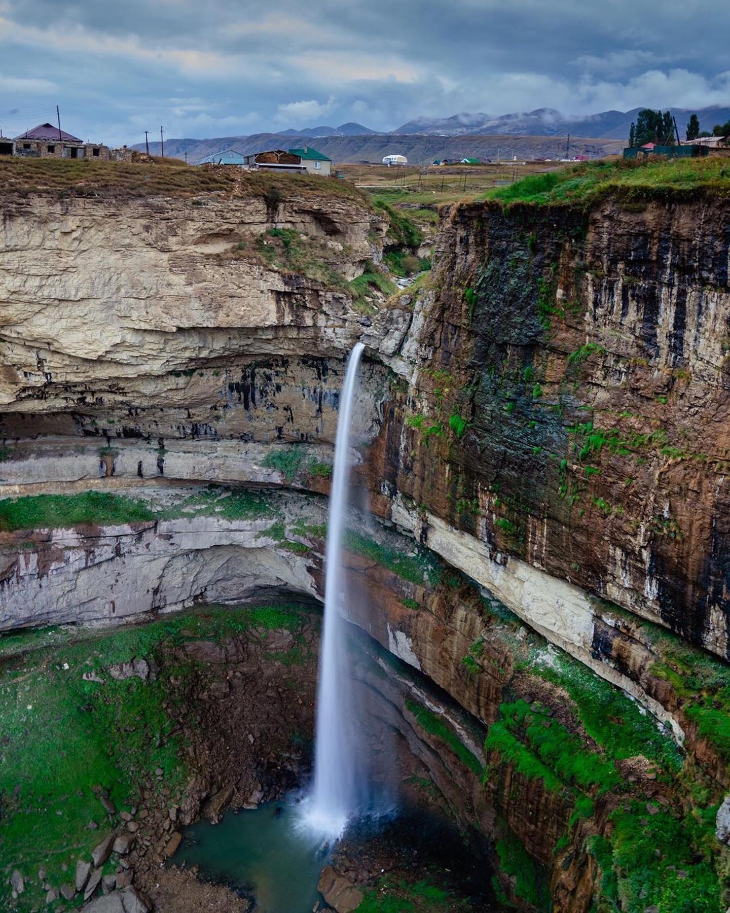 Считается одним из самых высоких водопадов Северного Кавказа. Высота водопада составляет практически 100 метров. Здесь же открывается невероятная панорама на Цолотлинский каньон.