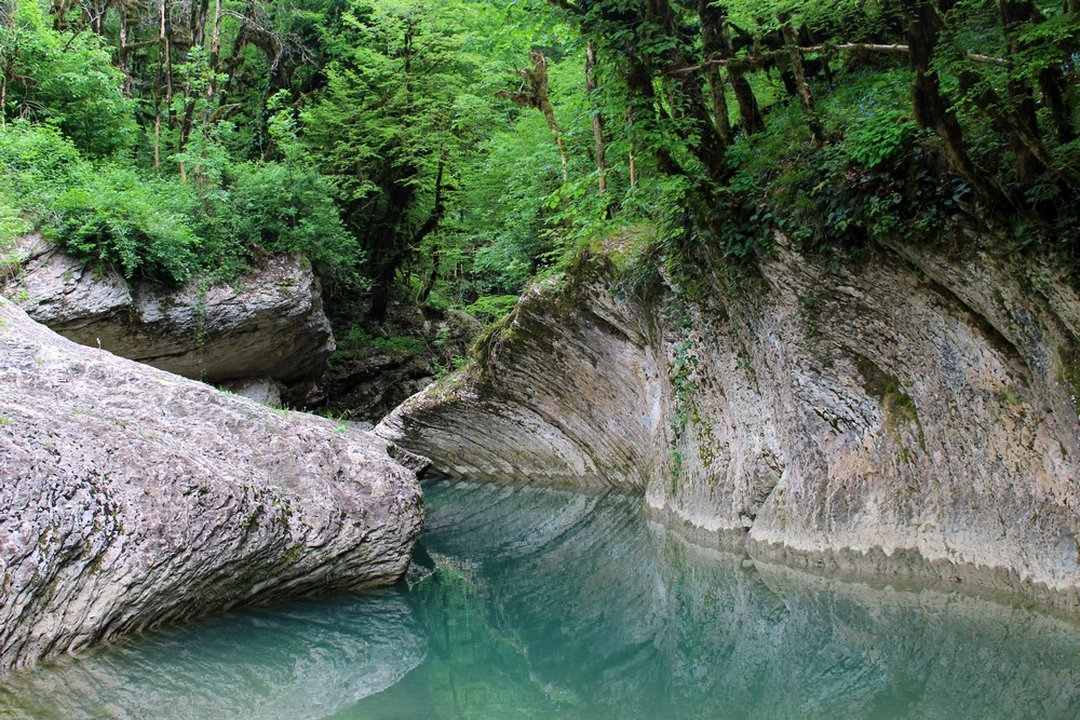 Расположенный недалеко от поселка Красная Воля, по праву считается одним из самых красивых. Буйство самшитового леса, лианы, изрезанные белые берега реки – полное погружение в «парк юрского периода».